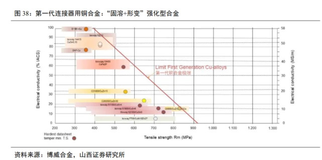 金品铜科、洛阳铜业、博威合金等企业在部分汽车连接器用铜合金方面取得成果。近年来我国金品铜科、洛阳铜业、博威合金等铜加工骨干企业为实现替代进口目标,瞄准航空、航天、通讯等高端应用领域紧缺的高强度、高电导、高精度的接触件铜材,开展铍铜、钛铜、镍硅铜、镍钴硅铜、铬锆铜、铁铜和碲铜等系列合金熔铸、轧制、热处理、精整等工艺攻关,取得了许多研发和产业化生产成果。目前部分铜合金带、丝材已能替代进口,镍钴硅铜、铬锆铜和碲铜等合金成功应用于新能源汽车连接器?/p>